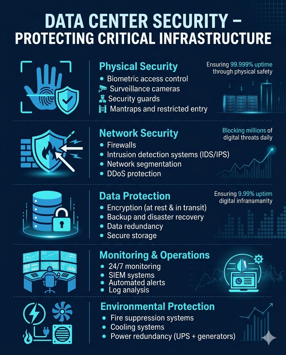 Note: A secure data center is not a static achievement but a continuous process of updating technology and educating the workforce to stay ahead of evolving threats.