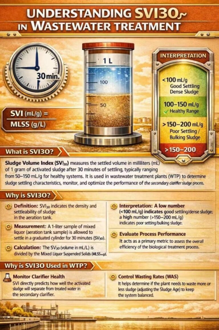 SVI₃₀ (Sludge Volume Index) is one of the most practical and widely used indicators for evaluating sludge settling characteristics in …