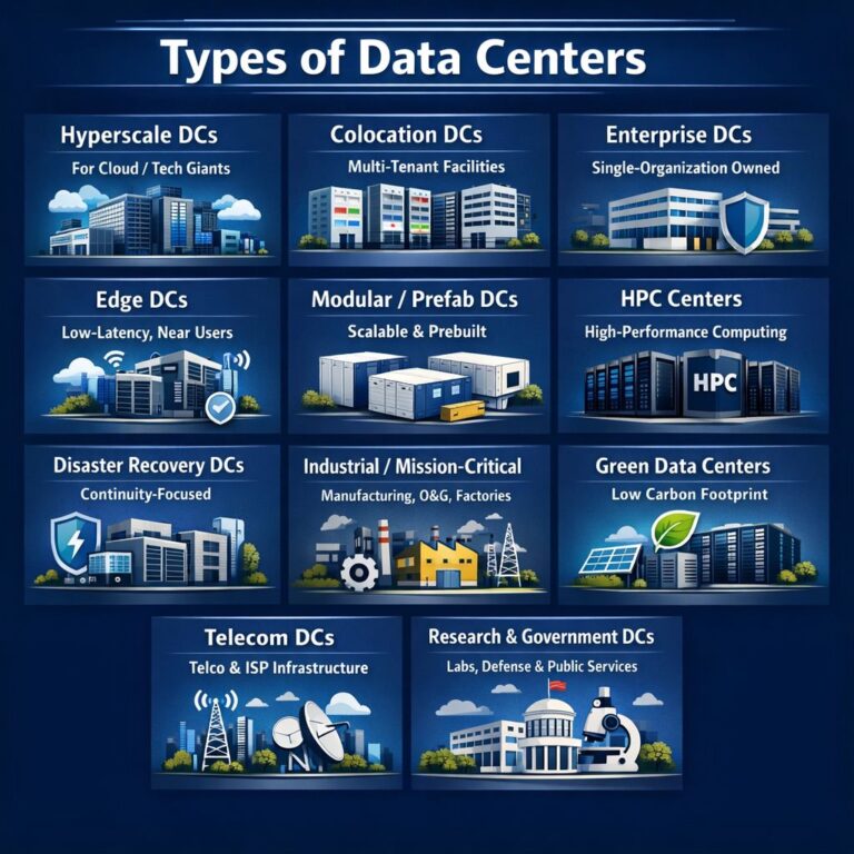 Data centers are designed based on scale, ownership model, workload type, latency needs, and resiliency requirements. Below are the major …
