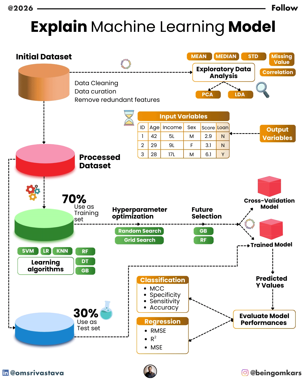 Every machine learning model consists of several core components that work together to enable learning and prediction.