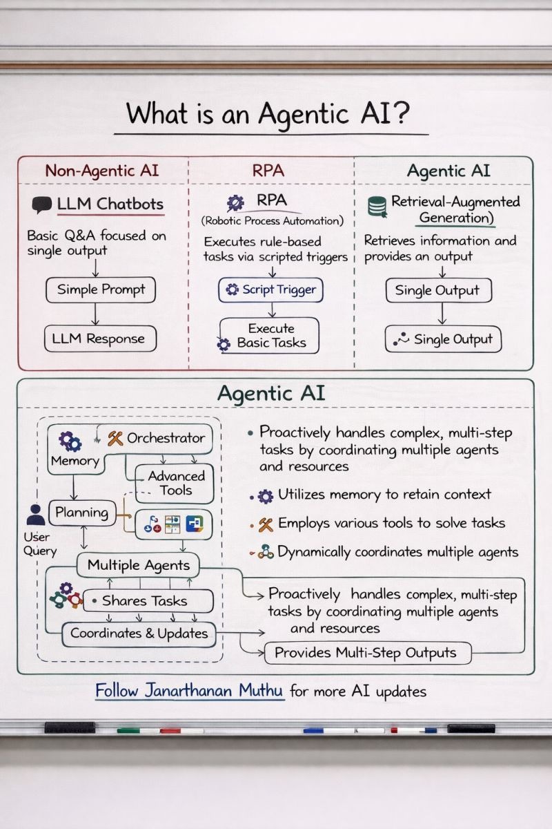 - Unlike traditional AI, agentic AI is proactive and capable of managing multi-step tasks without constant human input.