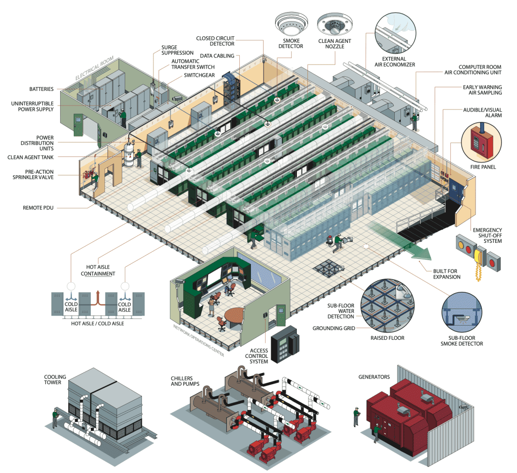 A data center is composed of several interconnected systems, each playing a vital role in its overall functionality. Understanding how these components are arranged and integrated is essential for effective design.